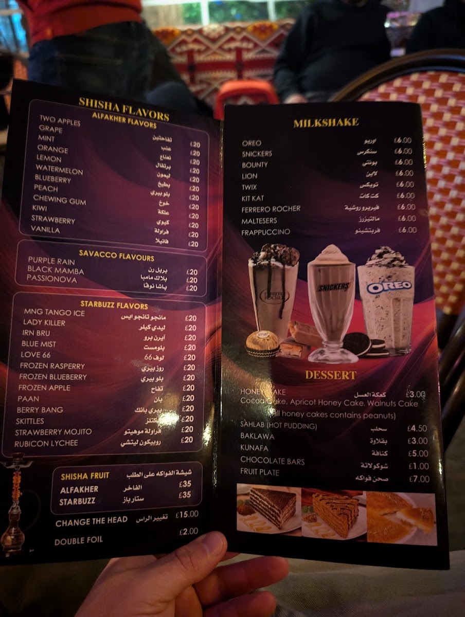 Complimenting the food, the ambience is accented by the soothing sounds of music and the alluring scent of authentic sheesha. The owner’s warm hospitality adds to the welcoming vibe, ensuring that every visit feels special. Whether you're looking to unwind after a long day or enjoy a late-night food experience, Number One Church Street promises a unique culinary journey.